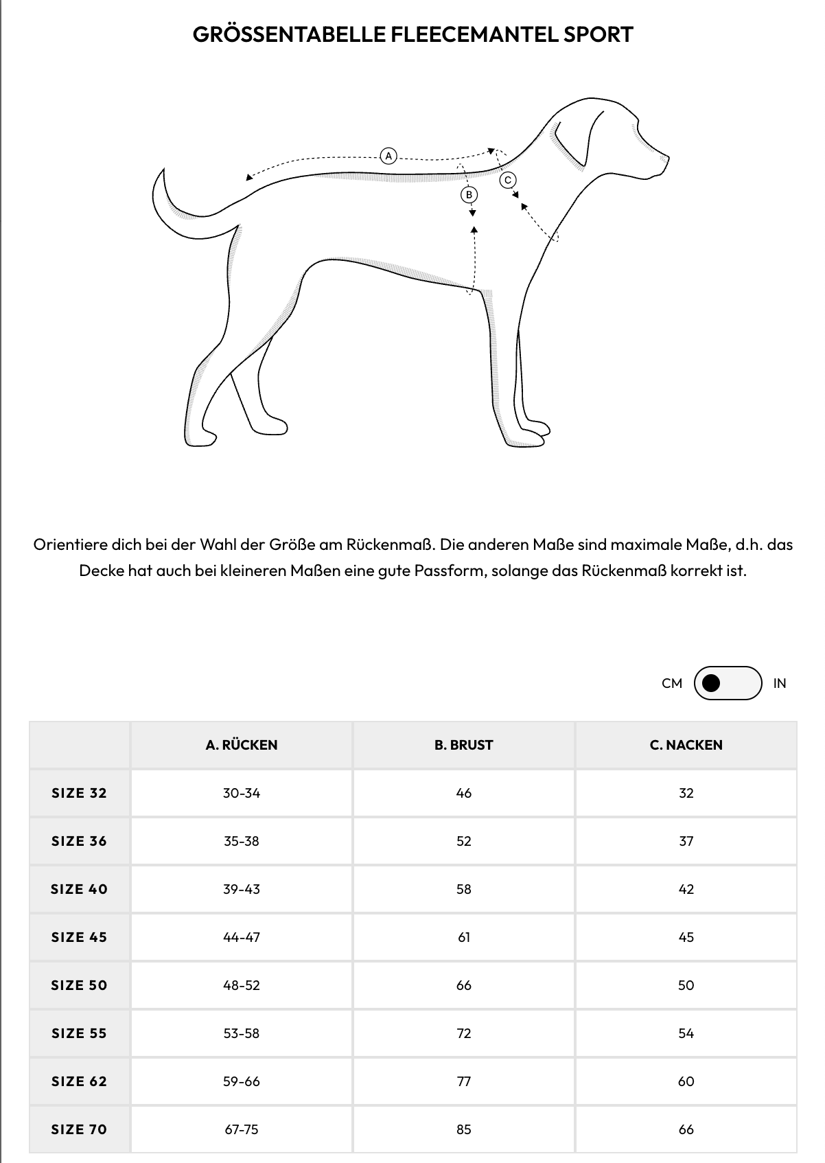 Der Fleecemantel SPORT ist eine leichte, funktionale Hundedecke, die durch ihre vielfältigen Einsatzmöglichkeiten besticht. Das hochelastische Fleece-Material zeichnet sich durch seine Weichheit aus und bietet dem Hund maximalen Komfort bei uneingeschränkter Bewegungsfreiheit. Ob bei kühleren Spaziergängen, in der Auf- und Abwärmphase beim Training oder als isolierende Schicht unter einem Regenmantel – dieses Modell ist ein unverzichtbarer Begleiter für den aktiven Hundealltag.