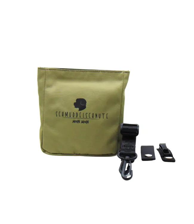 Der Büdel kommt mit drei Adaptern für viele verschiedene Tragemöglichkeiten. Der "Leckerlibüdel" hat ein großes Hauptfach und zwei weitere Innentaschen mit Reißverschlüssen. Auf der Rückseite befindet sich ein Fach für dein Handy und ein weiteres Fach für die Kotbeutel. Ein magnetischer Verschluss sorgt dafür, dass die Leckerli stets griffbereit sind. Ob für euer gemeinsames Training oder die tägliche Gassirunde, der Leckerlibüdel ist der perfekte Begleiter.