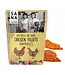 Diese puren Hähnchenfilets bestehen ausschließlich aus hochwertigem Geflügelfleisch und werden ohne überflüssige Zusätze hergestellt. Die handwerkliche Fertigung verzichtet konsequent auf Mais, Weizen, Soja, künstliche Farbstoffe, Konservierungsmittel, Fleischmehle oder sonstige Füllstoffe. Stattdessen setzt die Herstellung auf ein bewährtes Lufttrocknungsverfahren - eine zeitgemäße Weiterentwicklung traditioneller Fleischkonservierung.