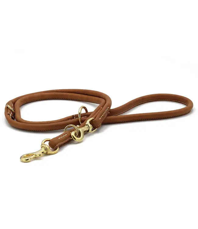 Diese rundgenähte Lederleine ist ein Paradebeispiel für die Verbindung von Eleganz und Belastbarkeit. Gefertigt aus handschuhweichem Nappaleder, besticht sie durch ihre brillante Farbgebung und eine haptische Qualität, die jeden Spaziergang aufwertet. Die goldfarbenen Beschläge verleihen der Leine ein luxuriöses Finish und machen sie zu einem zeitlosen Schmuckstück.